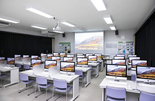 PC30台設置。授業(スクーリング)は一人一台で行います。